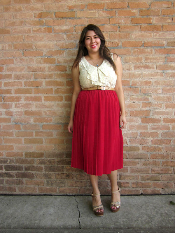| Forever 21 dress (worn as top), thrifted vintage skirt, belt from Wish (closed), Seychelles wedges from PB&J Boutique (giveaway win), necklace from Matt |
